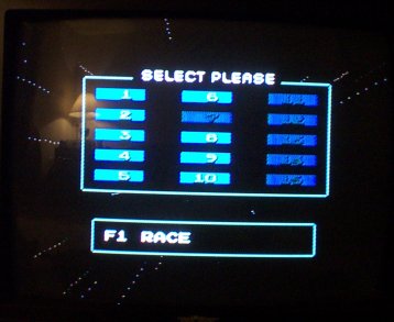 Once you put some cash in, this screen comes up. You can select the game you wish to play. Valid games are light blue, invalid games are dark blue. Hitting the start button runs the game. If you don't like the game, you can hit reset and select another without penalty.