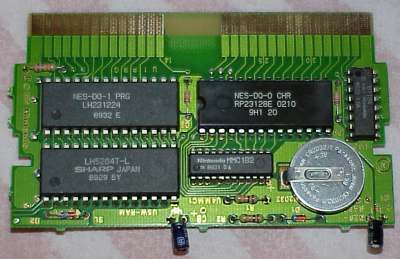 Standard MMC1 board with 8K of WRAM. My sample is from a Dragon Warrior cart.