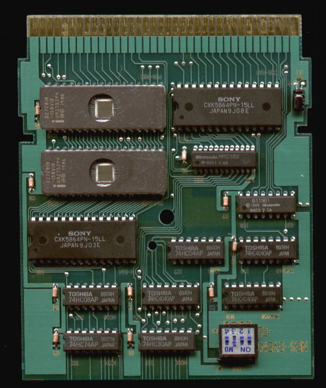 Anyways, this board contains ALOT of hardware. Two 128K PRG ROMs, 8K of WRAM, 8K of CHR RAM,